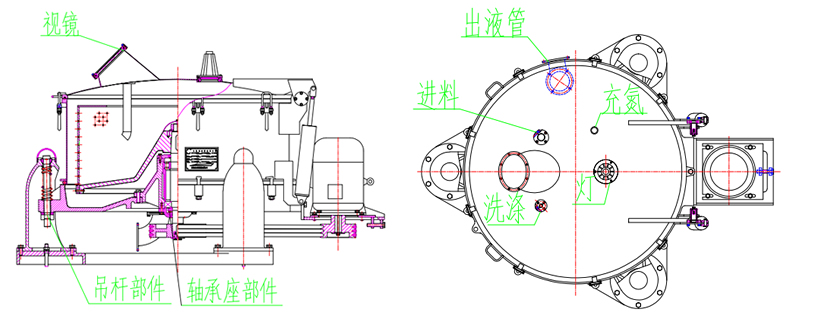 3.大翻蓋設(shè)計(jì),平衡缸助力,開蓋輕便省力。上蓋設(shè)置,進(jìn)料、水洗、視鏡、防爆燈、充氮口。